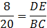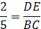 such that AD = 8 cm, DB = 12 cm, AE = 6 cm and CE = 9 cm. Prove that BC = 5/2 DE.