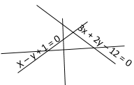 . Determine the coordinates of the vertices of the triangle formed by these lines and x-axis and shade the triangular area. Calculate the area bounded by these lines and x-axis.