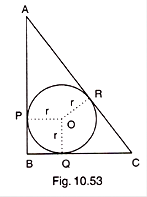 In Fig. 10.53, ABC is a right triangle right-angled at B such that BC = 6 cm and AB = 8 cm. Find the radius of its incircle.