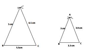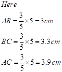 Construct a triangle with sides 5 cm, 5.5 cm and 6.5 cm. Now construct another triangle, whose sides are 3/5 times the corresponding sides of the given triangle.