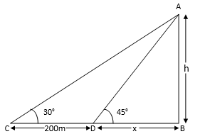 The angles of depression of two ships from the top of a light house and on the same side of it are found to be 45° and 30° respectively. If the ships are 200 m apart, find the height of the light house.