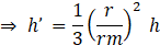 A conical flask is full of water. The flask has base-radius r and height h. The water is poured into a cylindrical flask of base-radius rm. Find the height of water in the cylindrical flask.