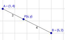 If A and B are (1, 4) and (5, 2) respectively, find the coordinates of P when AP/BP = 3/4.