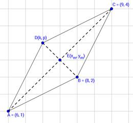 Let E(xm , ym) be the midpoint of diagonals AC and BD.