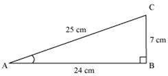 In Δ ABC, right-angled at B, AB = 24 cm, BC = 7 cm. Determine: