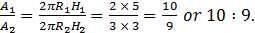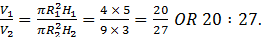 Ratio of radii of two cylinders = R1 : R2 = 2 : 3