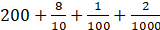 200.812 = 200 + 0.8 + 0.01 + 0.002