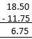 Rani had Rs. 18.50. She bought one ice-cream for Rs. 11.75. How much money does she have now?