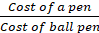 Cost of a dozen pens is Rs. 180 and cost of 8 ball pens is Rs. 56. Find the ratio of the cost of a pen to the cost of a ball pen.