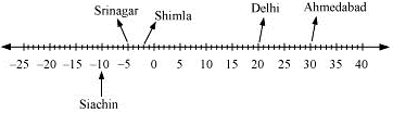 (b) Following is the number line representing the temperatures in degree Celsius.