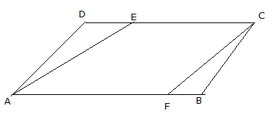 In the adjacent figure, ABCD is a parallelogram and line segments AE and CF bisect the angles A and C respectively. Show that .
