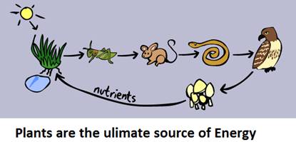 Show with the help of a sketch that the plants are the ultimate source of food.
