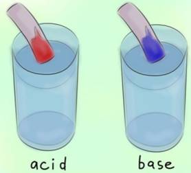 litmus* : Litmus is a dye that becomes red in acidic conditions and blue under alkaline conditions as shown in the pic below: