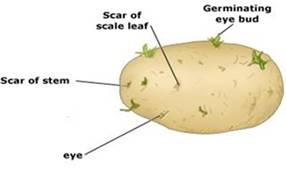 (i) Vegetative propagation: Vegetative propagation is the method of asexual reproduction in which new plants are produced from the vegetative parts of the plant like stems, roots and leaves. Example: Potato