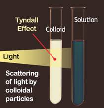(c) Examples of colloid are gold sol (colloidal gold), arsenic sulphide (AS2S3) sol, blood, detergent solution and sulphur solution. Sols have good stability and show the Tyndall effect.