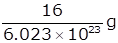 6.023x1023 atoms of oxygen have mass = 16g