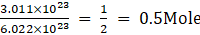 Since, 5 moles = 5 x 6.022 X 1023 = 30.11 X 1023