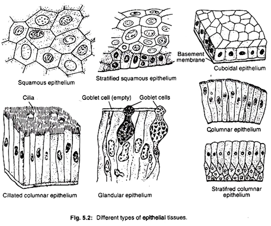 They are classified as- Simple squamous epithelium, Stratified squamous epithelium, Columnar epithelium, and Cubodial epithelium.