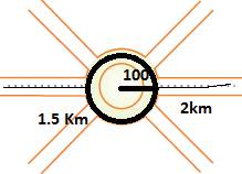 A boy is moving on a straight road against a frictional force of 5 N. After travelling a distance of 1.5 km he forgot the correct path at a round about (Fig. 11.1) of radius 100 m. However, he moves on the circular path for one and half cycle and then he moves forward upto 2.0 km. Calculate the work done by him.