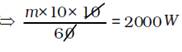 Power = work/ time = mgh/t ⇒ m (10)(10)/(60) = 2000