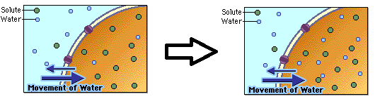 (b) A cell having low water concentration than the surrounding medium, meaning that the surrounding solution is very dilute (hypotonic solution), the cell will gain water by endosmosis. Such a solution is known as hypotonic solution.