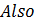 Also,