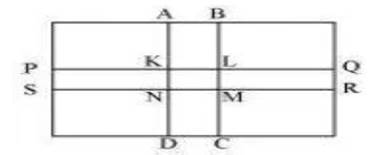 ∴ Area of the roads = Area of (PQRS) + Area of (ABCD) – Area of (KLMN)
