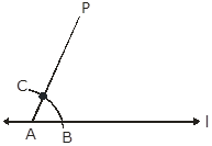 Step 2: With A as a center and a certain radius draw an arc intersecting l at B and AP at C.
