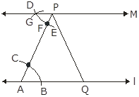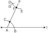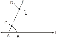 Step 3: Now, with the same radius taking the center as P draw an arc DE cutting AP at F.
