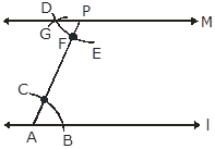 Step 5: Now, join PG to draw a line m which will be parallel to line m