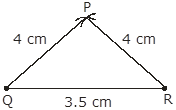 Draw ΔPQR with PQ = 4 cm, QR = 3.5 cm and PR = 4 cm. What type of triangle is this?