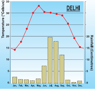In Table-I the average mean monthly temperatures and amounts of rainfall of ten representative stations have been given. It is for you to study on your own and convert them into ‘temperature and rainfall' graphs. A glance at these visual representations will help you to grasp instantly the similarities and differences between them. One such graph (Figure attached) is already prepared for you. See if you can arrive at some broad generalizations’ about our diverse climatic conditions. We hope you are in for a great joy of learning. Do the following activities.