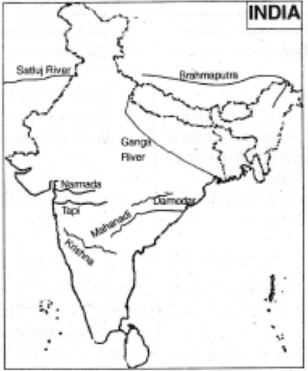 On the outline map of India mark and label the following rivers: Ganga, Satluj, Damodar, Krishna, Narmada, Tapi, Mahanadi and Brahmaputra.