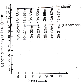 Collect weather reports of seven successive days in the winter months (preferably December). Collect similar reports for summer months (preferably June). Now prepare a table for sunrise and sunset time as shown: