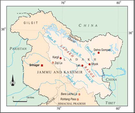 On the outline map of India, mark the Karakoram Range, Zanskar Range, Ladakh and Zoji La pass.