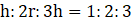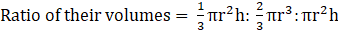 A cone, a hemisphere and a cylinder stand on equal bases and have the same height. The ratio of their volumes is
