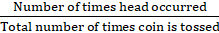 Probability of getting a head is P(head) = = =