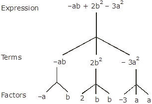 Identify the terms and their factors in the following expressions. Show the terms and factors by tree diagrams.