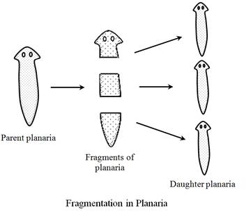 When the body of planaria is cut into number of pieces, the each and every body piece can regenerate and results in formation of a complete planaria. The regeneration of an organism occurs by the process of growth and development. The cells of body part which has been cut down gets divides and makes a ball of cells. These multiple cells results in formation of tissues and forms organs again and results in regeneration of another Planaria. It can be explained with the help of the following diagram: