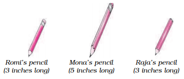 ● Mona’s pencil is longer than both Romi and Raja’s pencil.