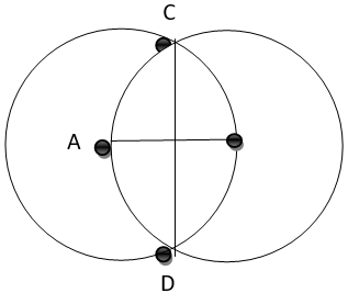 Let A, B be the centres of two circles of equal radii; draw them so that each one of them passes through the centre of the other. Let them intersect at C and D.