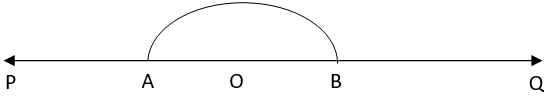 2. Taking O as centre and convenient radius, draw an arc which intersects PQ at A and B.