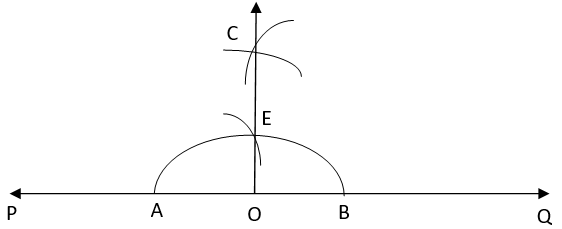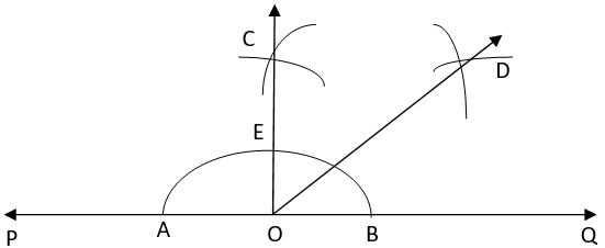 1. Draw a line PQ and take a point O on it.