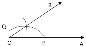 3. Taking P as centre and same radius, cut previous arc at Q. Join OQ. Thus, ∠BOA is required angle of 60°.