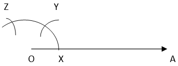 3. Taking X as centre and same radius, cut previous arc at Y. Taking Y as centre and same radius, draw another arc intersecting the same arc at Z.