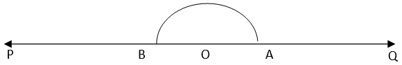 2. Taking O as centre and convenient radius, mark an arc, which intersects PQ at A and B.