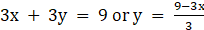 If x = 0 then y = 3, If x = 3, then y = 0.