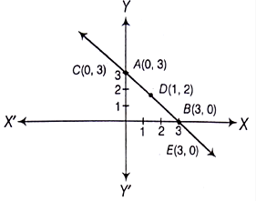 Plotting the points A(0, 3) and B(3, 0), we get the line AB. Again, plotting the points C(0, 3) and D(1, 2) and E(3, 0), we get the line CDE.