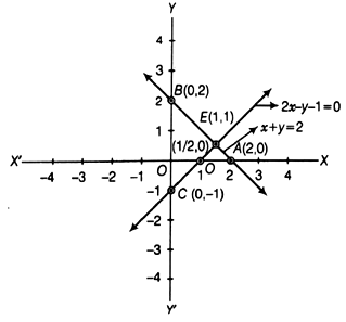 Plotting the points A (2,0) and B(0,2), we get the straight line AB. Plotting the points C(0,- 1) and D(1/2, 0), we get the straight line CD.