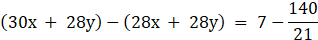 Now, multiplying in Eq. (iv) by 28 and then subtracting from Eq. (iii), we get
